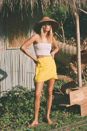 ISLA Wrap Skirt - sunshine yellow linen cotton