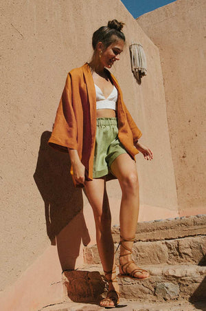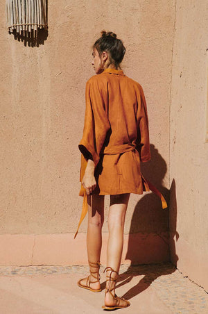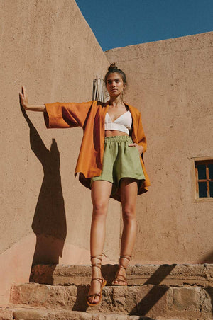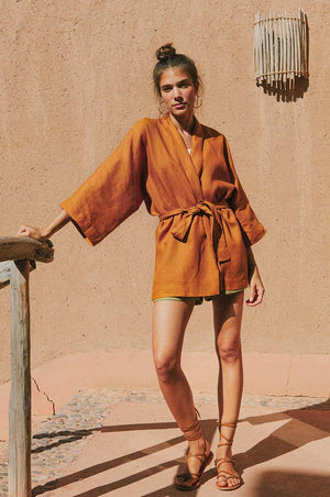 The PAUSE Jacket is your perfect versatile companion this summer. Wear it as a sophisticated, loose jacket over your sunshine outfit or coordinate it with our MOMENT top and SUMMER linen shorts or EASE hemp pants. Crafted from mid-weight, 100% French Flax linen, this sustainable staple has naturally cooling and breathable properties - we cannot think of a better fabric for summer! The slightly loose design elevates your look and adds a cool, sophisticated touch to your style. Available in 2 chic, warm neutrals and comes with belt.