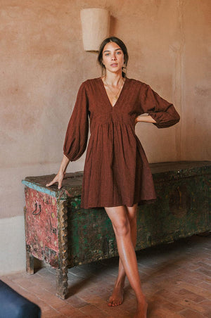 ALMA Mini Dress - chocolate cotton