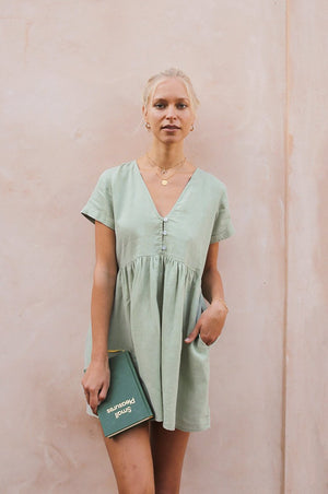 The perfect all-round dress for your sunchasing adventures! This cute babydoll dress with side pockets is our absolute bestseller, you will live in it! Crafted from the softest linen and designed in a flowy cut, it keeps you cool even in hot climates.