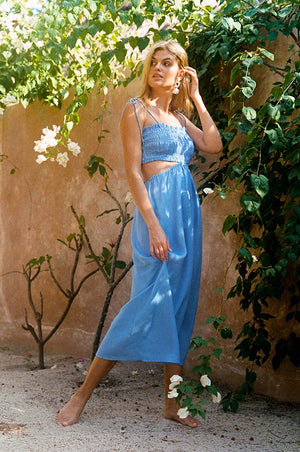 The shirred bodice and beautiful cut-out detailing blend into the perfect balance of sophistication and comfort. The eye-catching piece comes in super soft 100% French flax linen which feels just oh so breezy and looks beautiful. The perfect addition to elevate your beach-side wardrobe.
