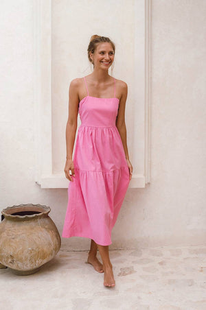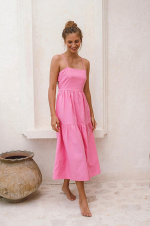 The JOIE is the love-forever staple your summer capsule wardrobe needs. A bestseller designed for sun-kissed moments - whether you're island-hopping or sipping cocktails at golden hour. Effortless to style for any occasion, it's crafted from breezy linen-cotton with a double-layered bodice for bra-free coverage, an elasticated back, and striking open-back details.