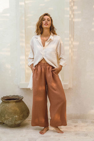 These timeless, slightly loose fitting and wide-legged linen pants are sure to become a favourite in your wear-forever summer closet. Crafted from mid-weight, super soft 100% French Flax Linen, you will wear them on repeat on all your warm weather days.