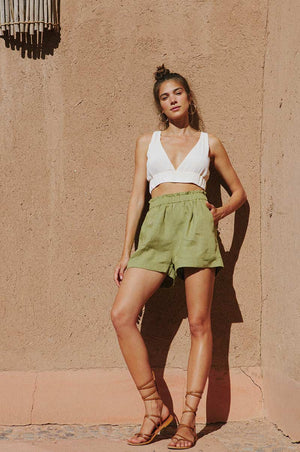 Such an effortless essential for your holidays and beyond! The highly flattering design of our SUMMER shorts and their super soft feel of light-weight, 100% French flax linen make them the perfect addition to your wear-forever summer wardrobe. They feature an elasticated waistband for extra comfort and side pockets with beige lining to reduce transparency. Style them with our SUMMER linen shirt-dresses for an instant sophisticated sunshine outfit you will live in all summer long.