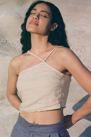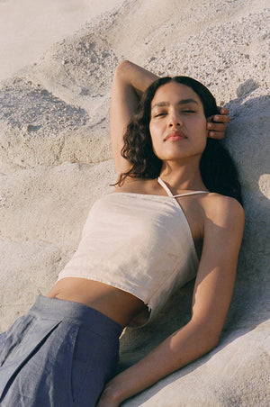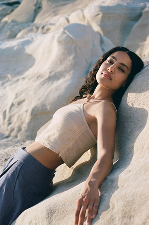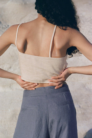 Elevate your style with the THALIA Top, our asymmetrical linen crop top designed to make a statement. Crafted from premium 100% French flax linen and lightweight cotton lining, the THALIA Top feels luxuriously soft as well as breathable on your skin. Embrace the perfect mix of a sophisticated summer top with a nod to minimal style, which will serve you well on all your sun-filled days.