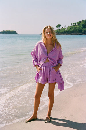 Relaxed oversized tailoring at its best! Crafted from super soft, light-weight 100% French flax linen, this throw-on shirt-dress in warm hues will be your go-to this summer. Thanks to the cooling characteristics of linen, you will feel breezy and luxurious even in warm climates. And it has so many ways to style it! Elevate your wardrobe by layering it over your favourite staples or swimmers, combine it with our matching SUMMER Shorts and style it with your favourite minimal jewellery. Take this all-rounder from daytime to nighttime, city to vacations - this high-rotation piece is made to last.
